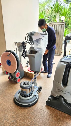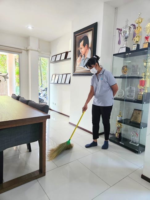 5. อุปกรณ์ที่แม่บ้านนำไปเป็นอุปกรณ์ทำความสะอาดพื้นฐาน ไม่รวมเครื่องดูดฝุ่น (ขึ้นอยู่กับแพคเกจ)
